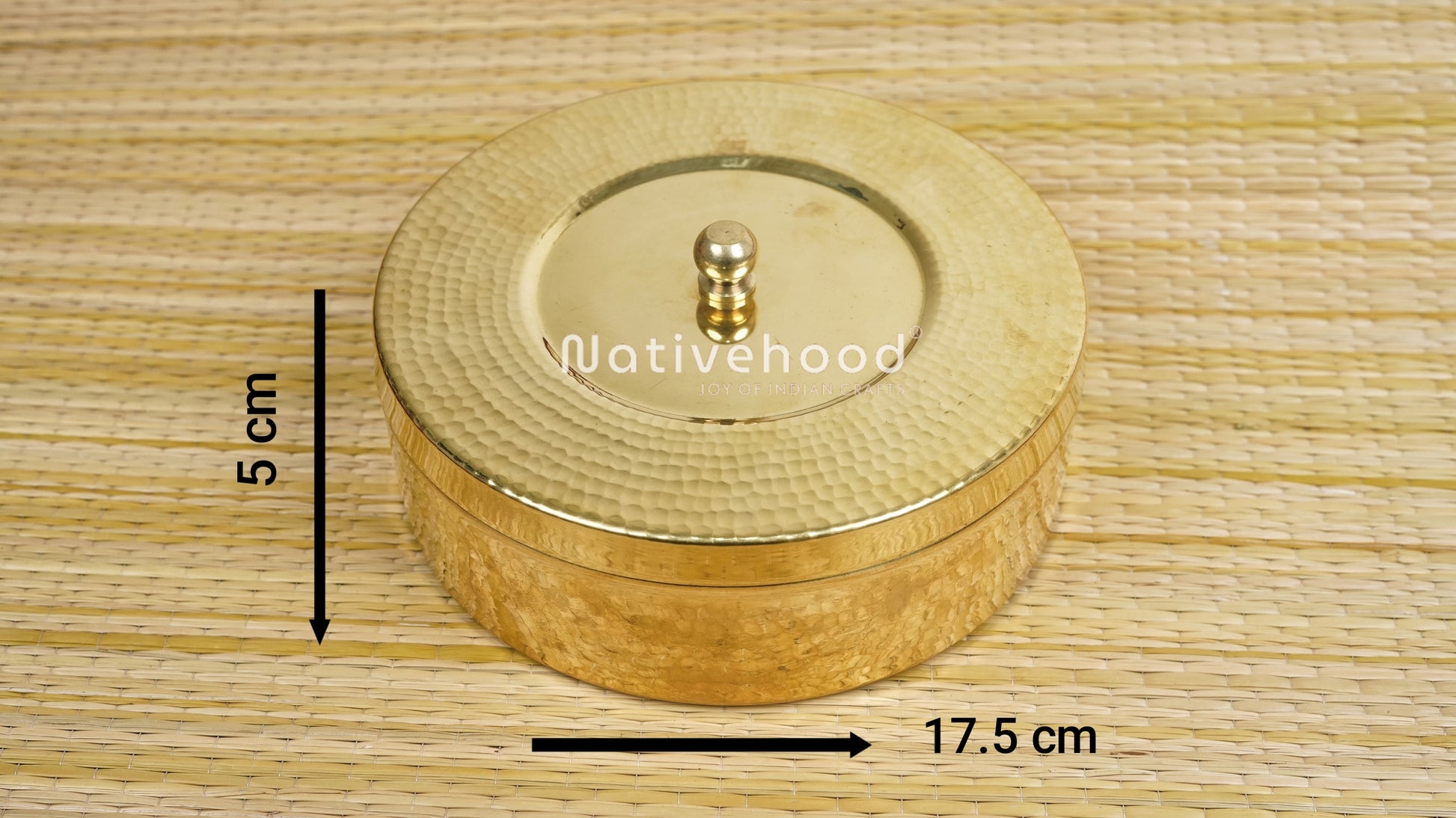 Enhance your culinary space with our Brass Masala Box, crafted with a stunning glossy hammered design . This heavy-duty masala box is perfect for storing and organizing your favorite spices, ensuring they stay fresh and ready to enrich your cooking.