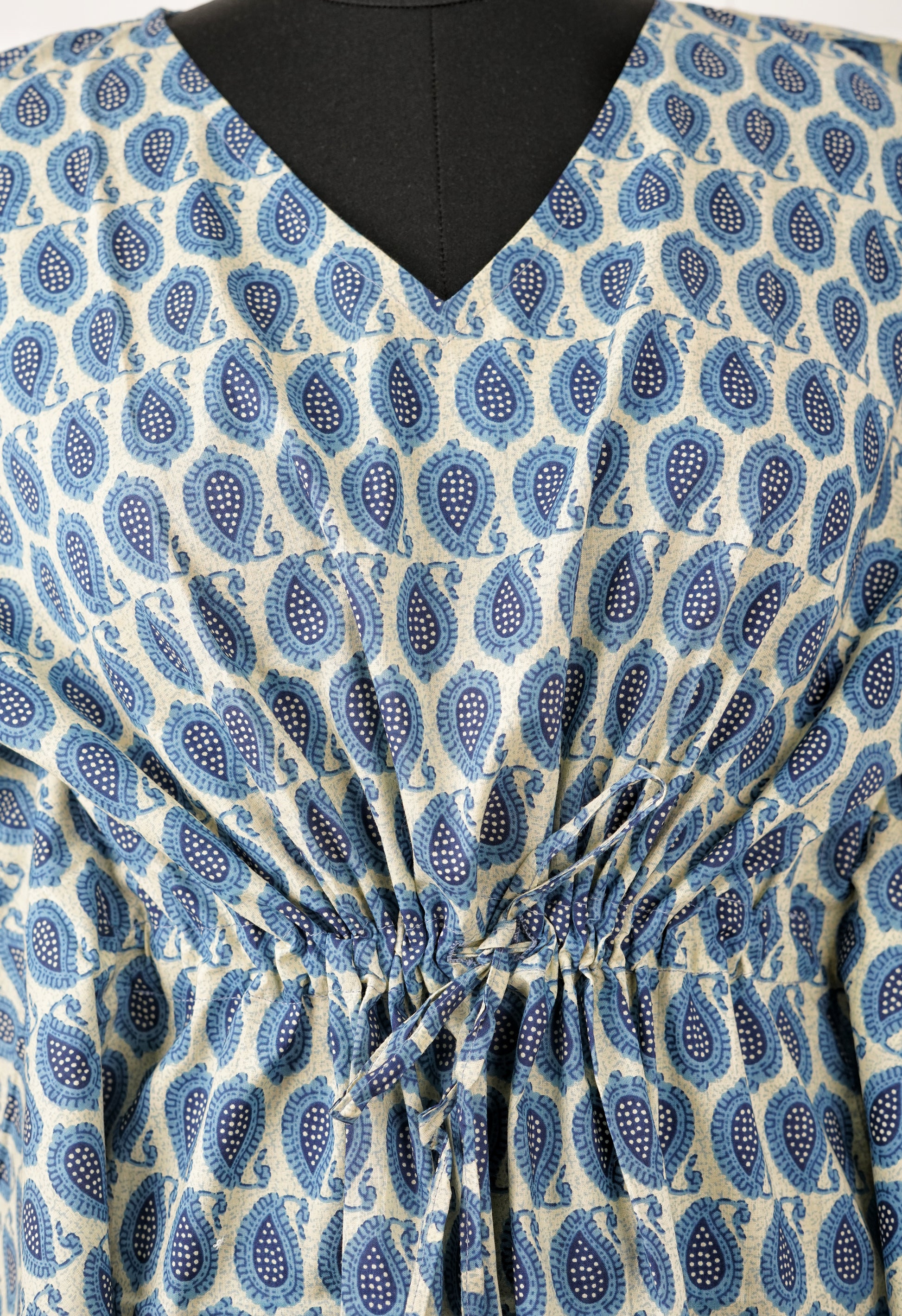 Feel comfortable in our elegant breezy cotton printed long kaftan – Free in size, Easy to Wear, Comfortable best to look effortlessly. The long kaftans have a drawstring at the waist and side slit for easy movement.