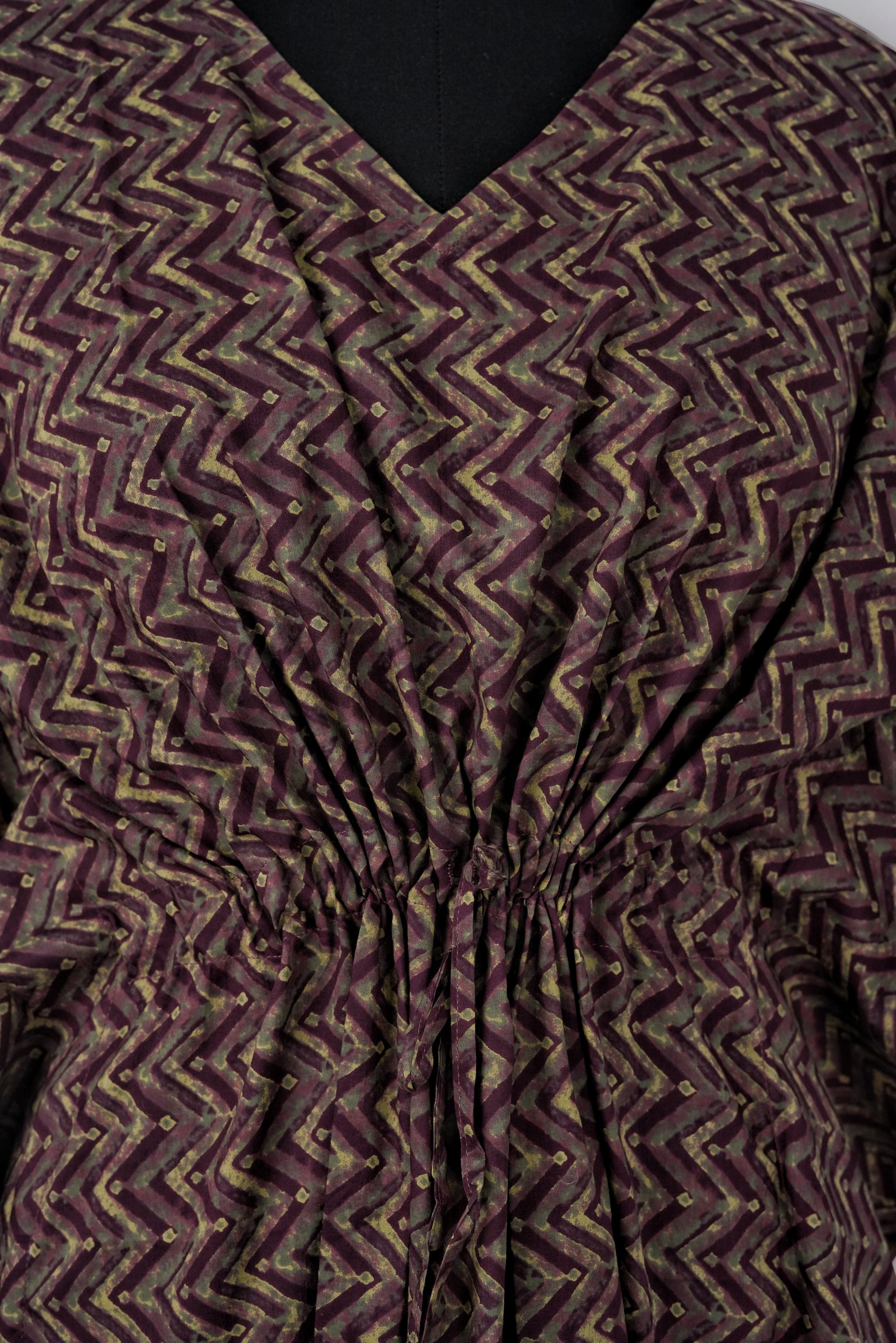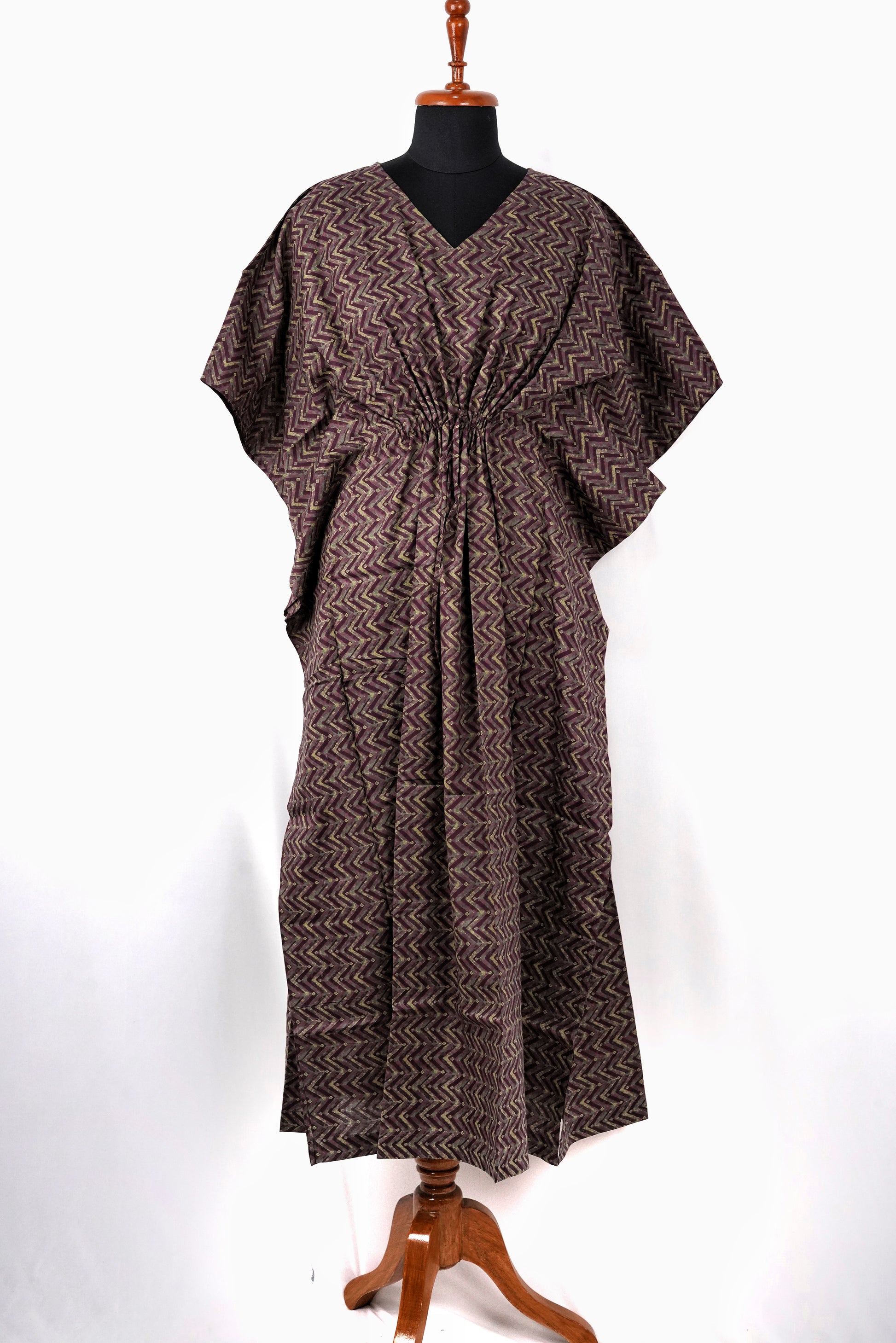 Feel comfortable in our elegant breezy cotton printed long kaftan – Free in size, Easy to Wear, Comfortable best to look effortlessly. The long kaftans have a drawstring at the waist and side slit for easy movement.