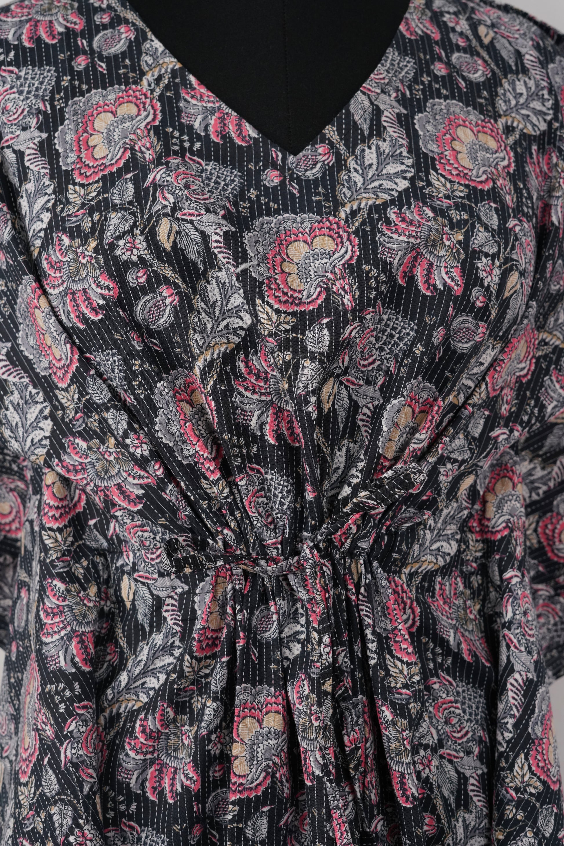 Feel comfortable in our elegant breezy cotton printed long kaftan – Free in size, Easy to Wear, Comfortable best to look effortlessly. The long kaftans have a drawstring at the waist and side slit for easy movement.