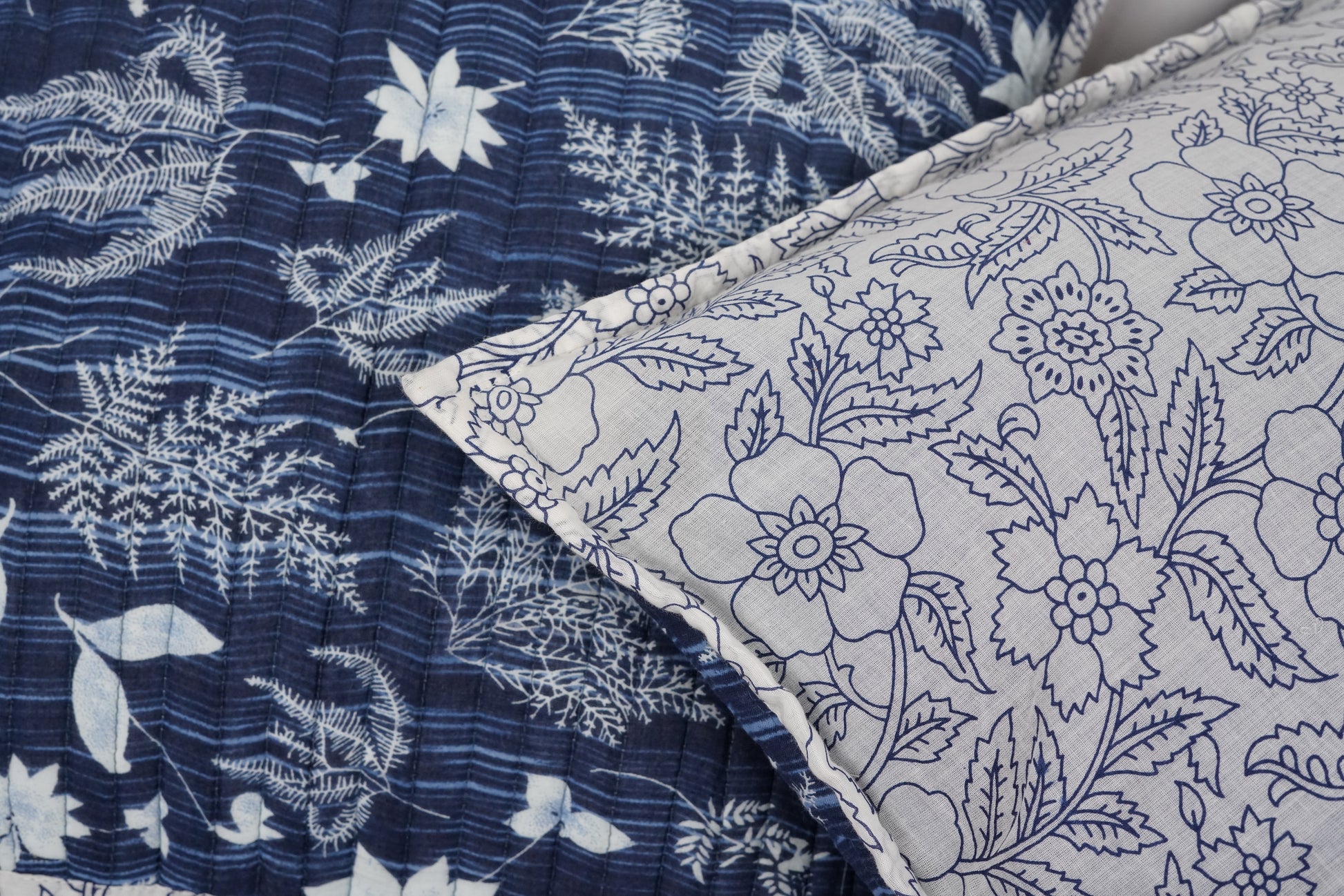 Indurekha Quilted Cushion Cover Mul Cotton Indigo